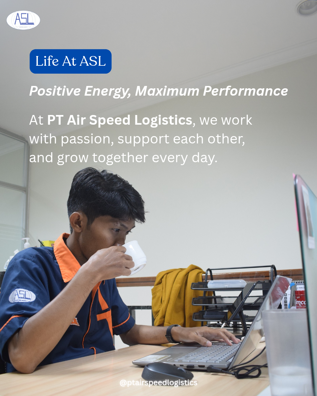 Positive Energy, Maximum Perfomance at PT Air Speed Logistic, we work with passion, support each other, and grow together every day